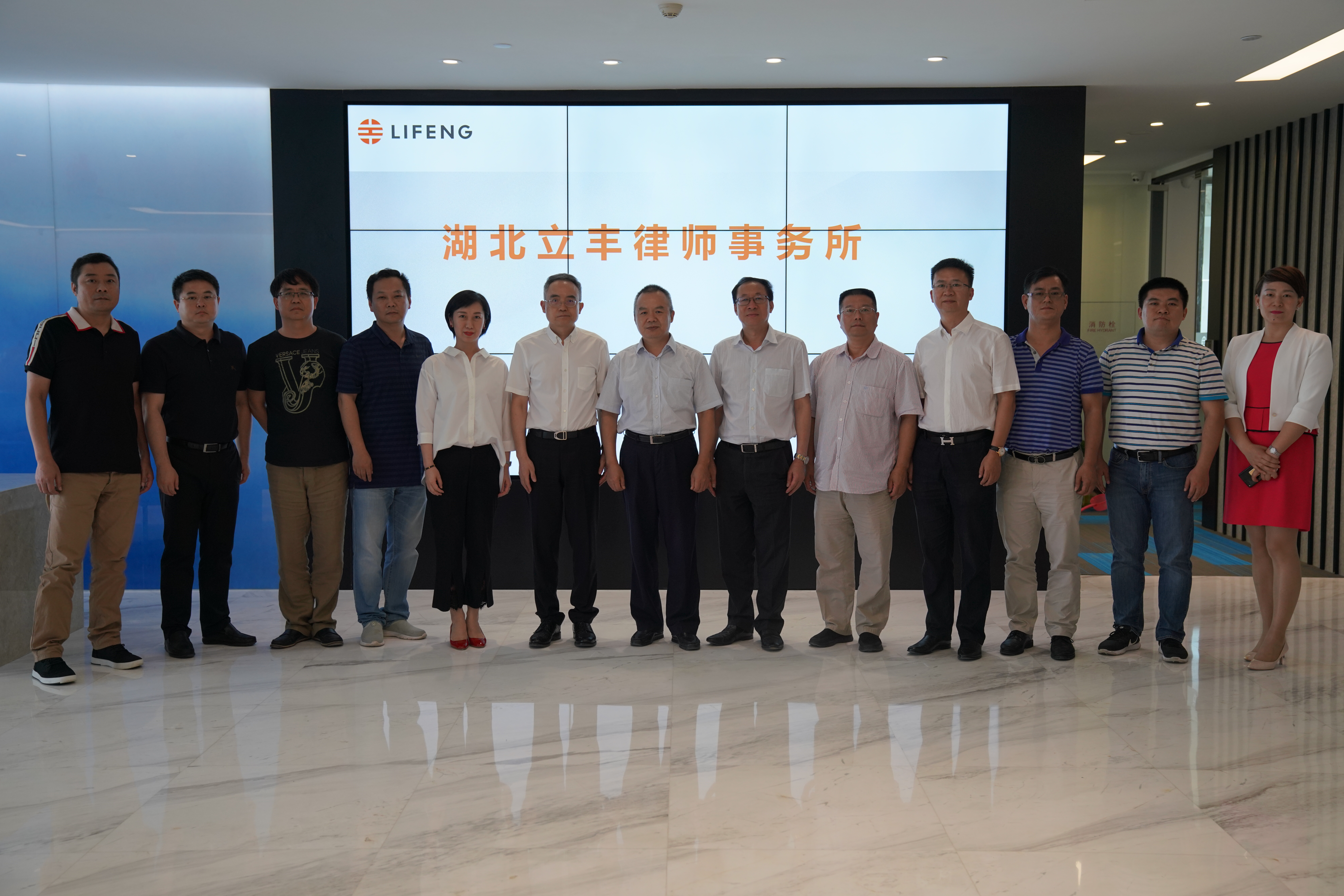 2018年7月13日上午9時,武漢市司法局黨委委員、副局長、市律師行業(yè)黨委書記聶德宗,武漢市律師協(xié)會秘書長、市律師行業(yè)黨委委員黃有鴻,在市司法局律管處副處長、市律師行業(yè)黨委委員宋東輝,市司法局律管處副處長樊靜,市司法局律管處科長方亮的陪同下,蒞臨湖北立豐律師事務(wù)所(以下簡稱“立豐所”),就律所管理、建設(shè)與發(fā)展及黨建工作進行考察調(diào)研。
