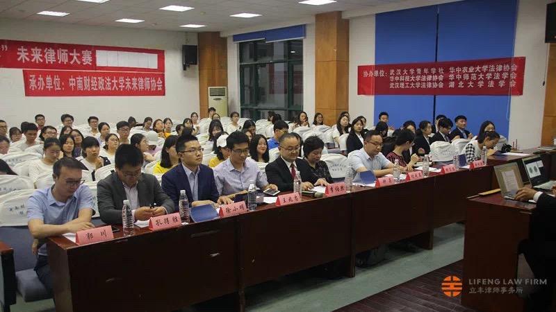 2019年5月19日19:00,由中南財(cái)經(jīng)政法大學(xué)法學(xué)院共青團(tuán)委員會主辦、中南財(cái)經(jīng)政法大學(xué)未來律師協(xié)會承辦、湖北立豐律師事務(wù)所合作舉辦的第十二屆“中南杯•未來律師大賽總決賽”在中南財(cái)經(jīng)政法大學(xué)南湖校區(qū)文泰樓第二模擬法庭舉行。特邀立豐所高級合伙人鐘莉律師、立豐所李伯然律師擔(dān)任總決賽評委。