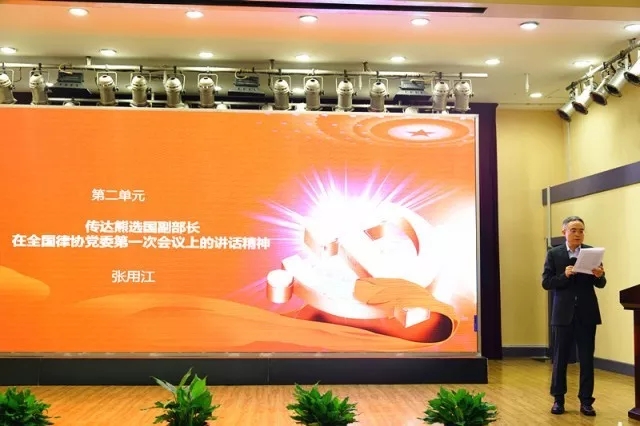 湖北省律師協(xié)會副會長、立豐黨支部書記張用江做輔導報告,他連日來加班加點親自備課并制作了圖文并茂、通俗易懂的PPT,滿懷深情地講解了十九大報告等會議文件精神。他還傳達了司法部副部長熊選國同志在全國律師行業(yè)黨委一次會議上的講話精神和最高人民法院、司法部聯(lián)合召開的“三項工作”推進會的精神,緊密聯(lián)系湖北律師行業(yè)以及立豐事務(wù)所黨建的實際解讀了十九大報告。