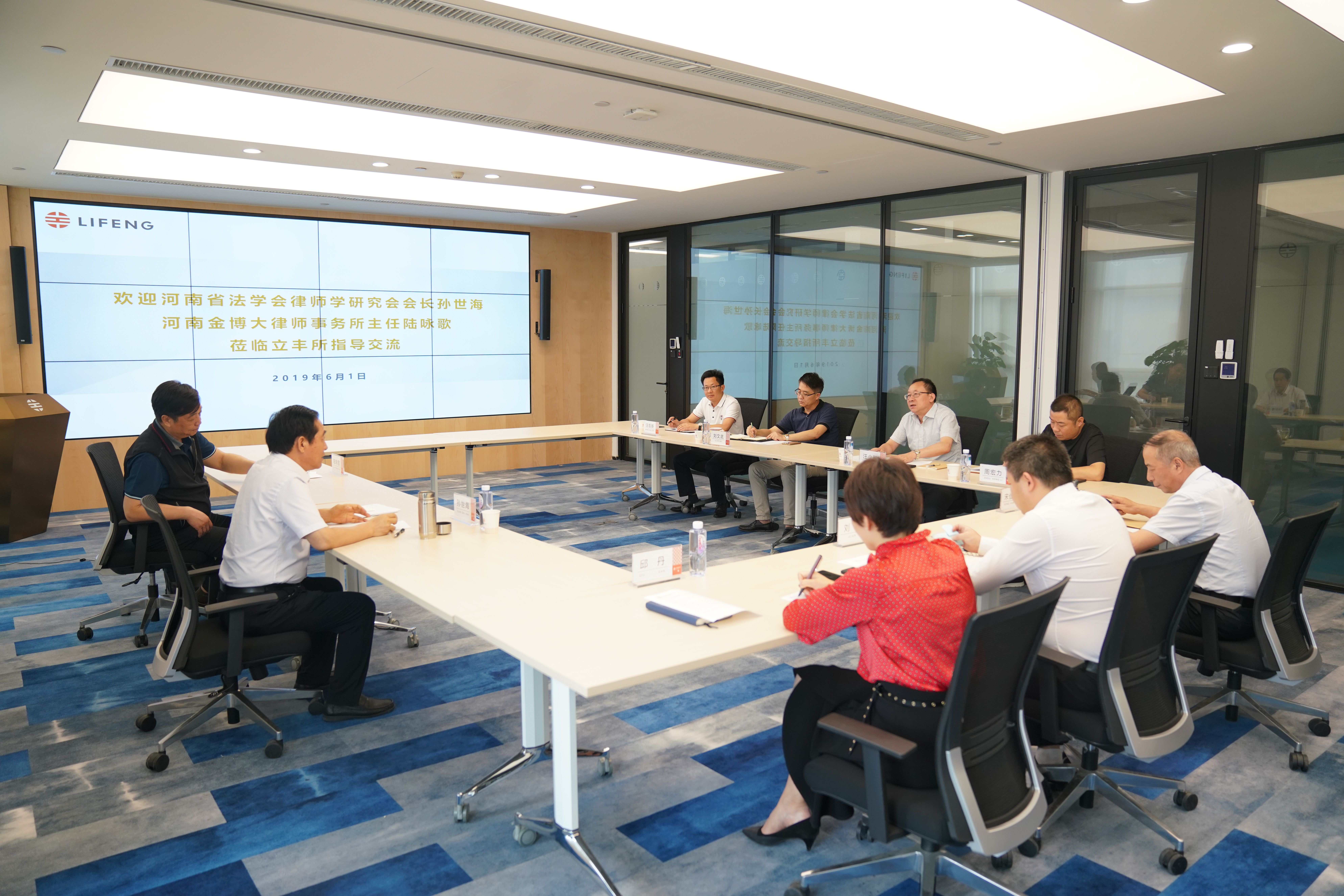 2019年6月1日下午,河南省法學(xué)會(huì)律師學(xué)研究會(huì)(以下簡(jiǎn)稱“律師學(xué)研究會(huì)”)會(huì)長(zhǎng)孫世海、河南金博大律師事務(wù)所(以下簡(jiǎn)稱“金博大所”)主任陸詠歌律師蒞臨湖北立豐律師事務(wù)所(以下簡(jiǎn)稱“立豐所”)指導(dǎo)交流。立豐所首席合伙人、律所主任汪少鵬和高級(jí)合伙人、黨總支部副書記汪后新,高級(jí)合伙人、監(jiān)事會(huì)主席劉文武,高級(jí)合伙人、監(jiān)事會(huì)副主席宋儉夫,高級(jí)合伙人、民商事業(yè)務(wù)部部長(zhǎng)吳畏及管委會(huì)副主任周宏力、劉勛、邱丹參加了座談交流。