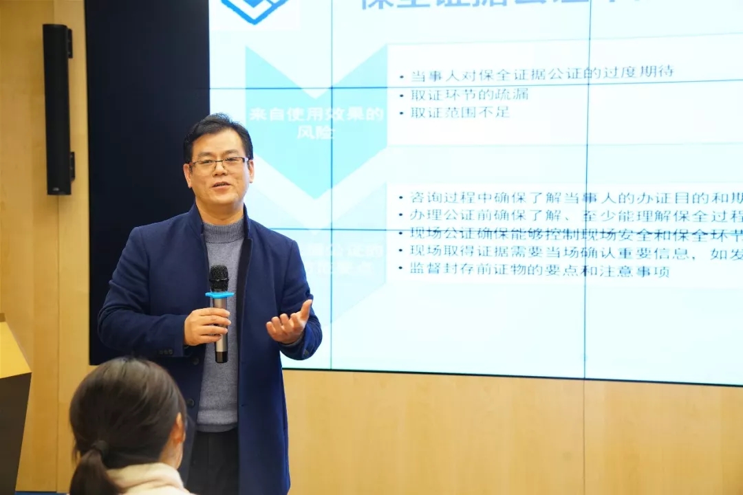 12月7日下午,湖北立豐律師事務(wù)所(以下簡稱“立豐所”)攜手武漢楚信公證處聯(lián)合舉辦了一堂生動的公證實務(wù)分享課,邀請了北京長安公證處公證員宮楠博士來到立豐所18樓1號會議廳講授《法律實踐中的公證實務(wù)——以保全證據(jù)公證為中心》。