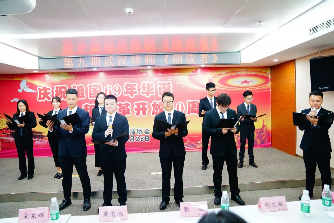 湖北立豐律師事務(wù)所(以下簡稱“立豐所”)于2018年9月28日(星期五)下午參加了武漢市律師協(xié)會組織的第九期武漢律師“朗讀者”活動。本期“朗讀者”活動旨在慶祝祖國69年華誕和改革開放40周年,全市各大律所律師踴躍報(bào)名、積極參加,各位參演律師用滿懷激情、聲情并茂的誦讀祝福我們偉大祖國更加繁榮富強(qiáng)。