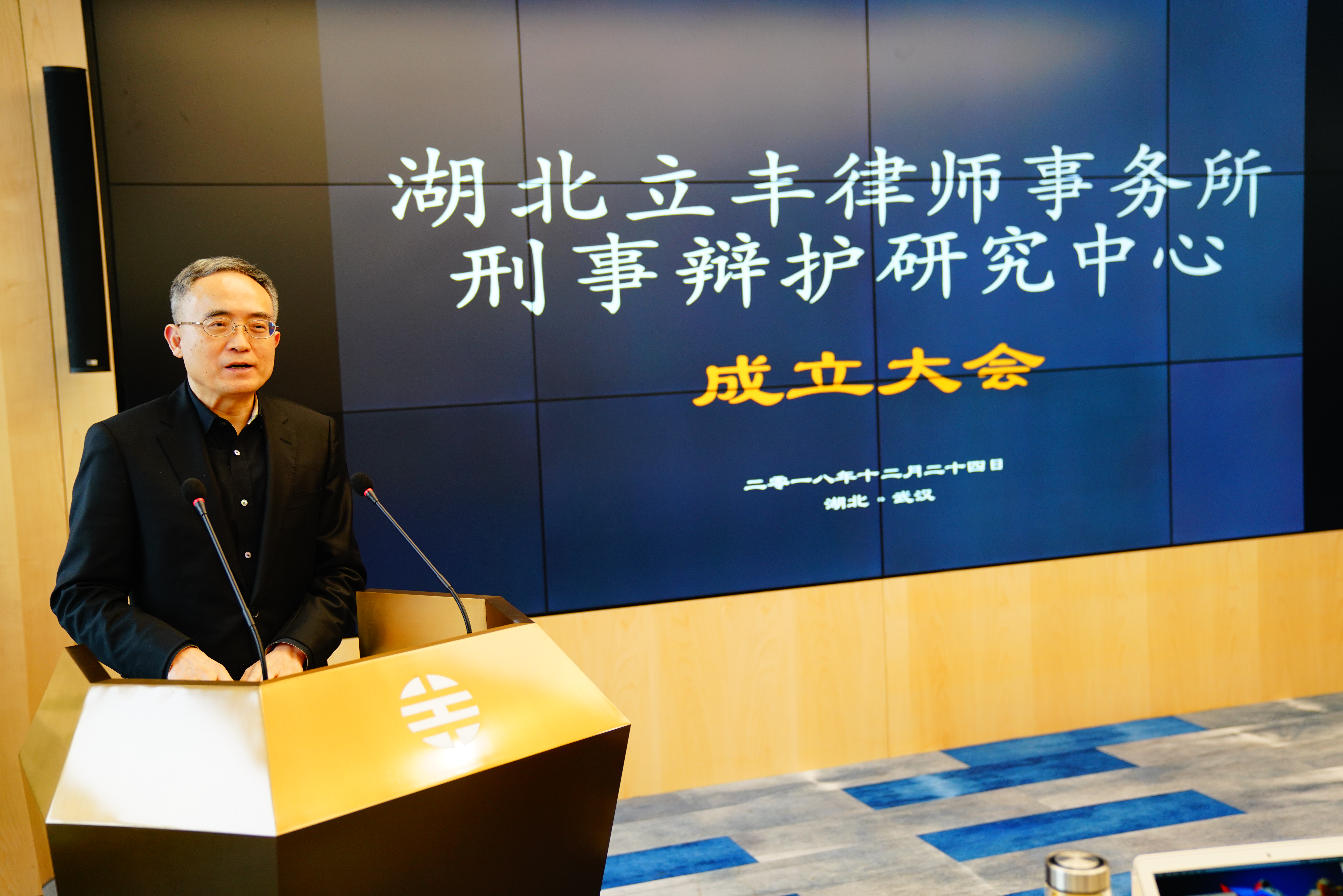 2018年12月24日14:00—15:30,湖北立豐律師事務(wù)所(以下簡稱“立豐所”)在寫字樓18樓會議室舉行立豐所刑事辯護(hù)研究中心(以下簡稱“立豐刑辯研究中心”)成立大會。立豐所首席合伙人、主任汪少鵬,高級合伙人、黨支部書記張用江,高級合伙人、監(jiān)事會主席劉文武,高級合伙人、刑事業(yè)務(wù)部部長陳亮,中南財經(jīng)政法大學(xué)刑事司法學(xué)院副教授、博士后、立豐所兼職律師袁建偉等60余名立豐所律師參加了成立大會。