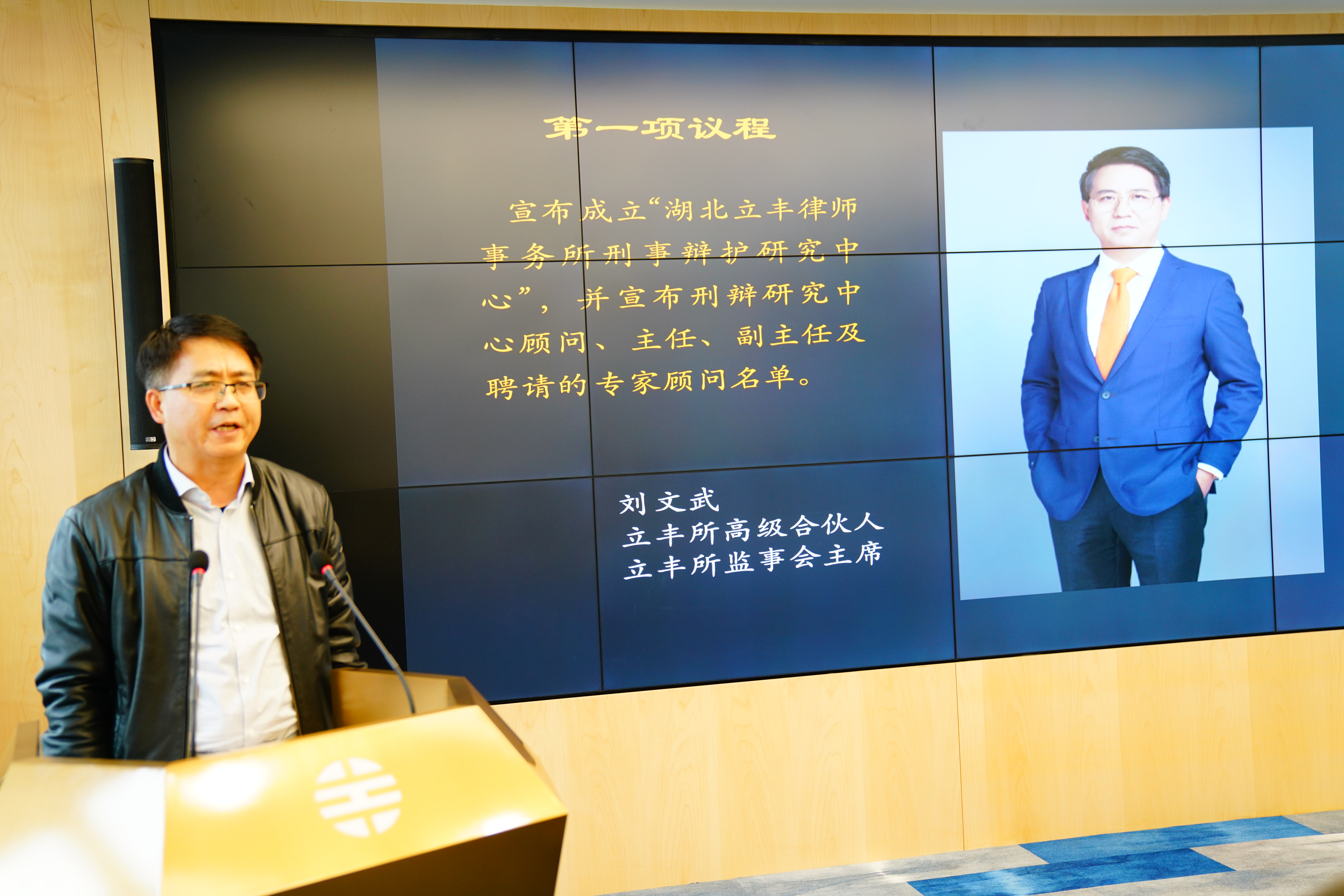 議程一:立豐所高級合伙人、監(jiān)事會主席劉文武宣布成立“立豐刑辯研究中心”
