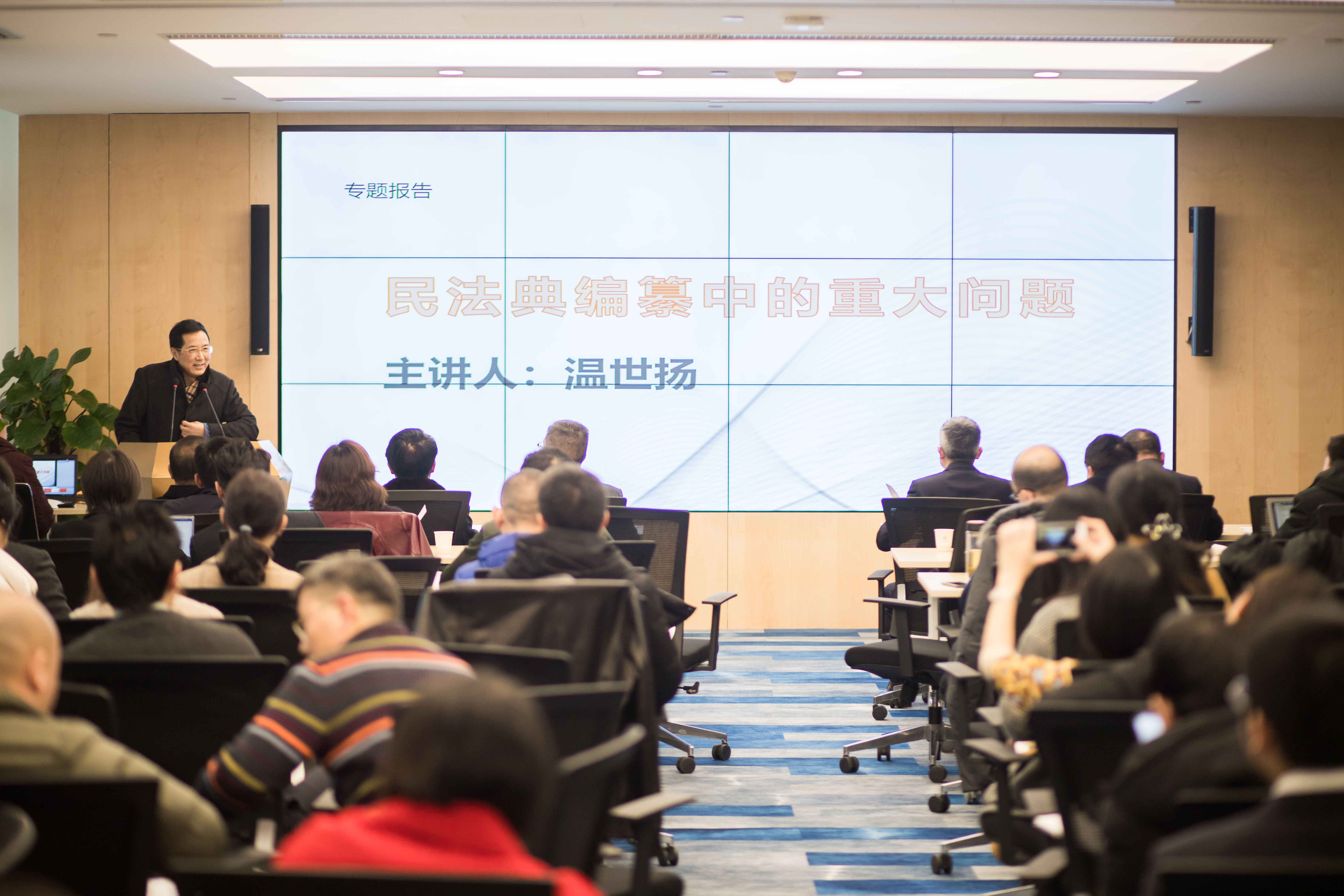 由中國(guó)民法學(xué)研究會(huì)副會(huì)長(zhǎng)、湖北省民法研究會(huì)常務(wù)副會(huì)長(zhǎng)、湖北省人大常委會(huì)立法顧問(wèn)、中南財(cái)經(jīng)政法大學(xué)法學(xué)院教授、博士生導(dǎo)師,溫世揚(yáng)教授進(jìn)行《民法典分編立法動(dòng)向》的專題報(bào)告。溫世揚(yáng)教授首先介紹了民法典分編編纂工作的現(xiàn)狀,接著從物權(quán)編、合同編、侵權(quán)責(zé)任編、人格權(quán)編四個(gè)方面分別介紹了目前四分編草案(送審稿)的立法動(dòng)向。