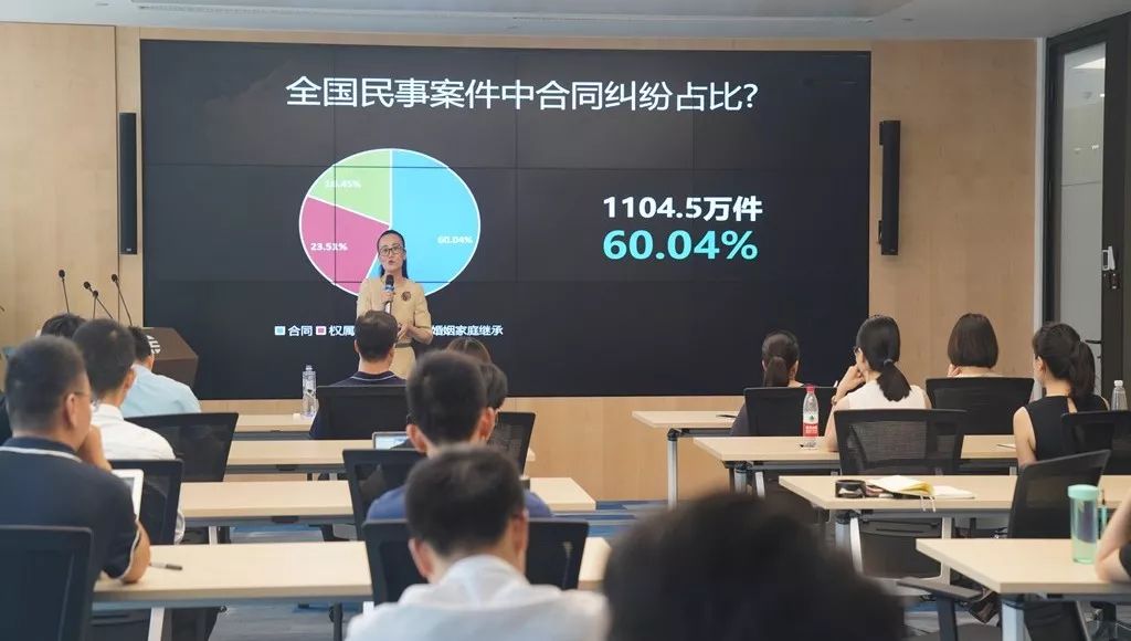 隨后培訓(xùn)進入講課階段,易卉律師就合同法律服務(wù)現(xiàn)狀分析、合同系統(tǒng)訓(xùn)練八大模塊、合同水平的四重境界、合同起草與審查的三個工作方法等內(nèi)容進行了重點講解。從設(shè)計交易結(jié)構(gòu)、布局謀篇、識別合同風(fēng)險等方面探討了合同起草和審查實務(wù)遇到的常見問題以及解決方案。
