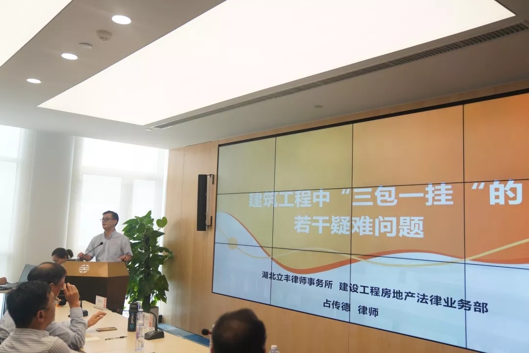 一、立豐所高級合伙人、建設工程房地產(chǎn)業(yè)務部部長、立豐所民商事研究中心主任占傳德律師做了主題分享《建設工程中“三包一掛”的認定和區(qū)別》。