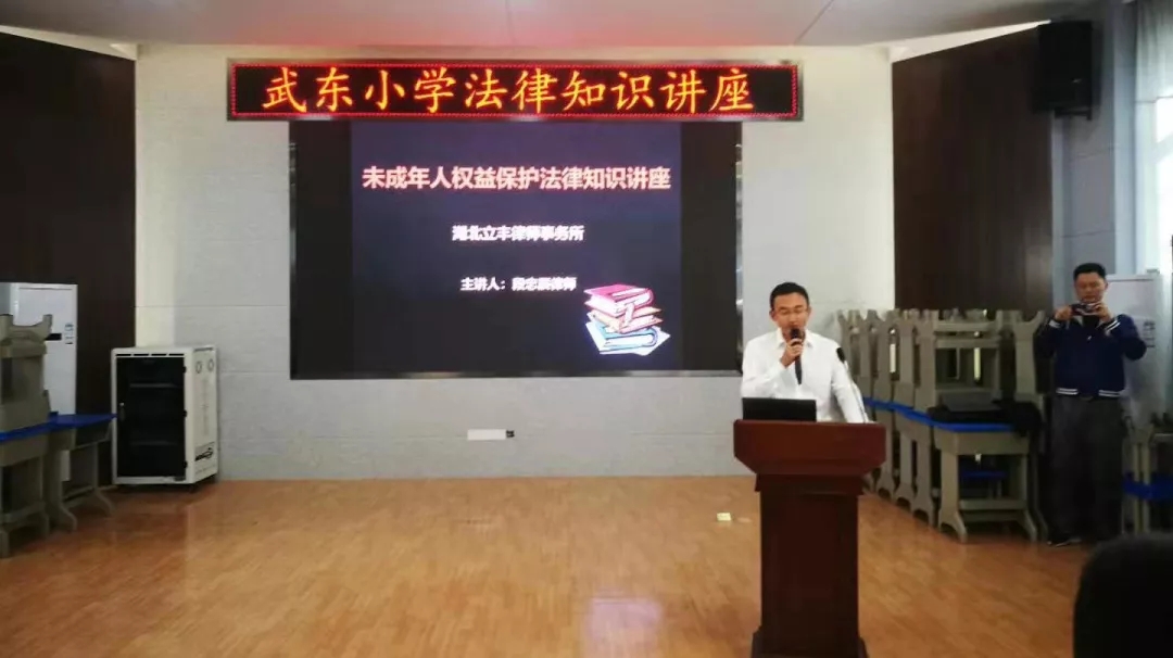 2019年10月24日,湖北立豐律師事務(wù)所青年律師段忠辰受武東司法所的邀請,在青山區(qū)武東街道武東小學(xué)開展一場別開生面的普法講座。講座圍繞,未成年人的法律保護展開。