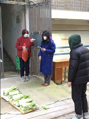 中共黨員、行政人員宋雪瑜,作為志愿者,參與東湖風(fēng)景區(qū)梨園社區(qū)的愛(ài)心菜及團(tuán)購(gòu)物資的分配與發(fā)放工作。