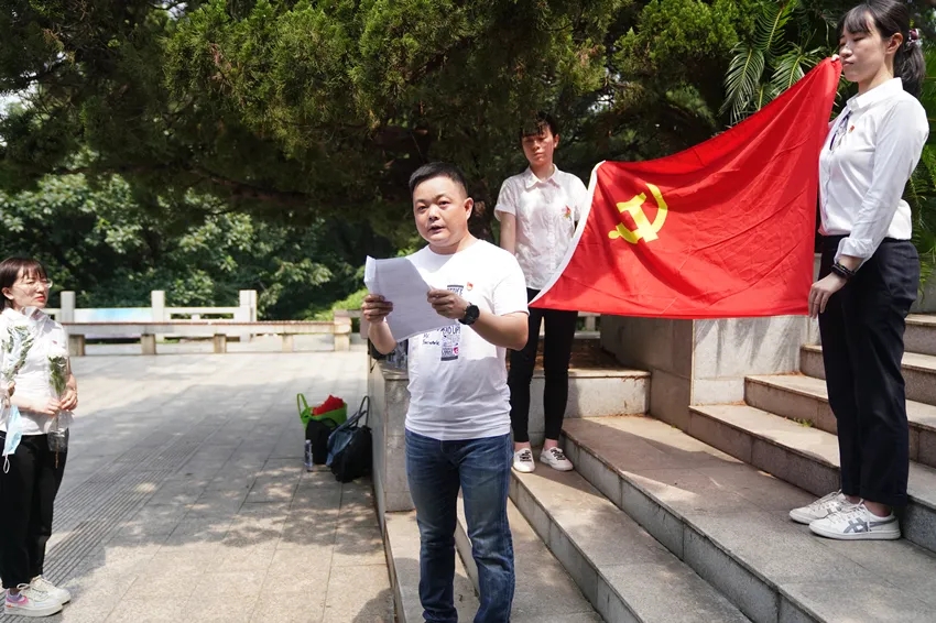 宣誓結(jié)束,預(yù)備黨員代表王永芳發(fā)表感言。他表示,在聆聽施洋烈士事跡、面對(duì)紀(jì)念碑宣誓之后,更加深切地感受到作為共產(chǎn)黨員的一份責(zé)任與義務(wù),在今后的生活、工作和學(xué)習(xí)中,將一定繼承革命先烈們的遺志,堅(jiān)定共產(chǎn)主義信仰,明確自己的歷史使命,永遠(yuǎn)保持黨員的先進(jìn)性。