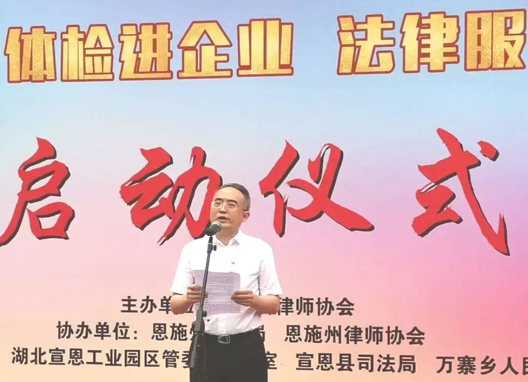 8月18日,由湖北省律師協(xié)會(huì)主辦,恩施州司法局、恩施州律師協(xié)會(huì)協(xié)辦,宣恩縣工業(yè)園區(qū)管委會(huì)辦公室、宣恩縣司法局、萬寨鄉(xiāng)人民政府承辦的“法治體檢”進(jìn)企業(yè)、法律服務(wù)進(jìn)村居活動(dòng)啟動(dòng)儀式在貢茶故里伍家臺(tái)舉行,現(xiàn)場(chǎng)11名律師、21家企業(yè)、200余名群眾參加活動(dòng)。