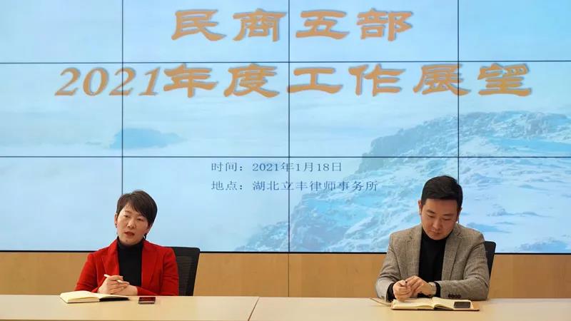 2021年1月18日,湖北立豐律師事務(wù)所民商五部開展了2020年度年終工作總結(jié),并對2021年部門工作進行了規(guī)劃與展望。本次會議由立豐所高級合伙人、民商五部部長邱丹律師與立豐所事業(yè)合伙人、民商五部副部長段斌律師組織召開。