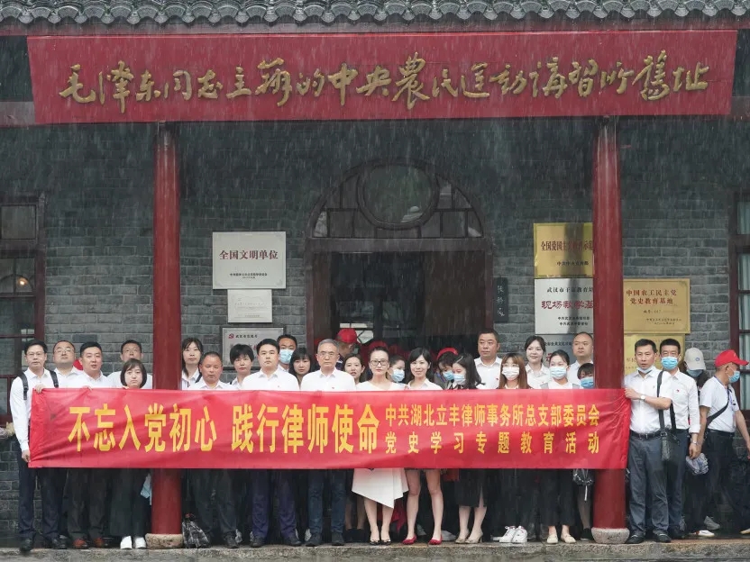 為深入貫徹落實(shí)習(xí)近平總書記在黨史學(xué)習(xí)教育動員大會上的講話精神,進(jìn)一步深化拓展“不忘初心·牢記使命”專題教育,中共湖北立豐律師事務(wù)所總支部委員會(以下簡稱“立豐黨總支”)于2021年5月14日組織黨員赴武漢革命博物館,尋訪紅色足跡、聆聽黨的故事,開展“不忘入黨初心·踐行律師使命”主題黨日活動。立豐黨總支書記易卉,黨總支委員周宏力、邵華、張小瑋、何煉高、汪磊,第一黨支部書記陳迪,第二黨支部委員段斌,第三黨支部書記張璇以及各支部黨員等三十余名同志參加了本次活動。