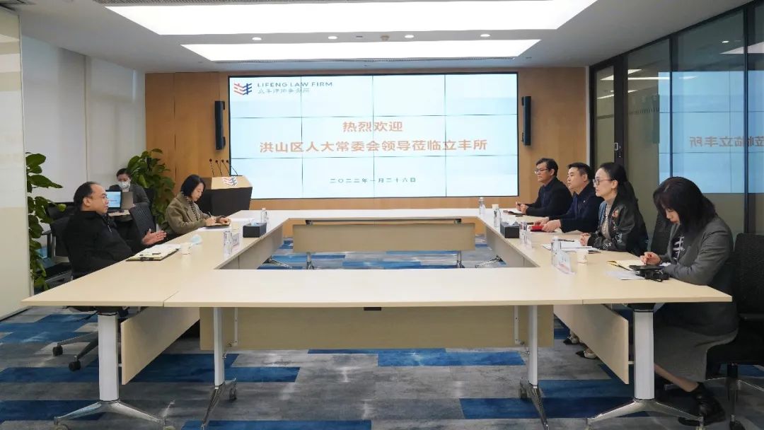 2022年1月26日,洪山區(qū)人大常委會(huì)副主任蘇民益等到湖北立豐律師事務(wù)所(以下簡稱“立豐所”)走訪調(diào)研。立豐所主任劉勛、黨總支書記易卉、管委會(huì)副主任占傳德、行政部部長王晶參加了調(diào)研座談。