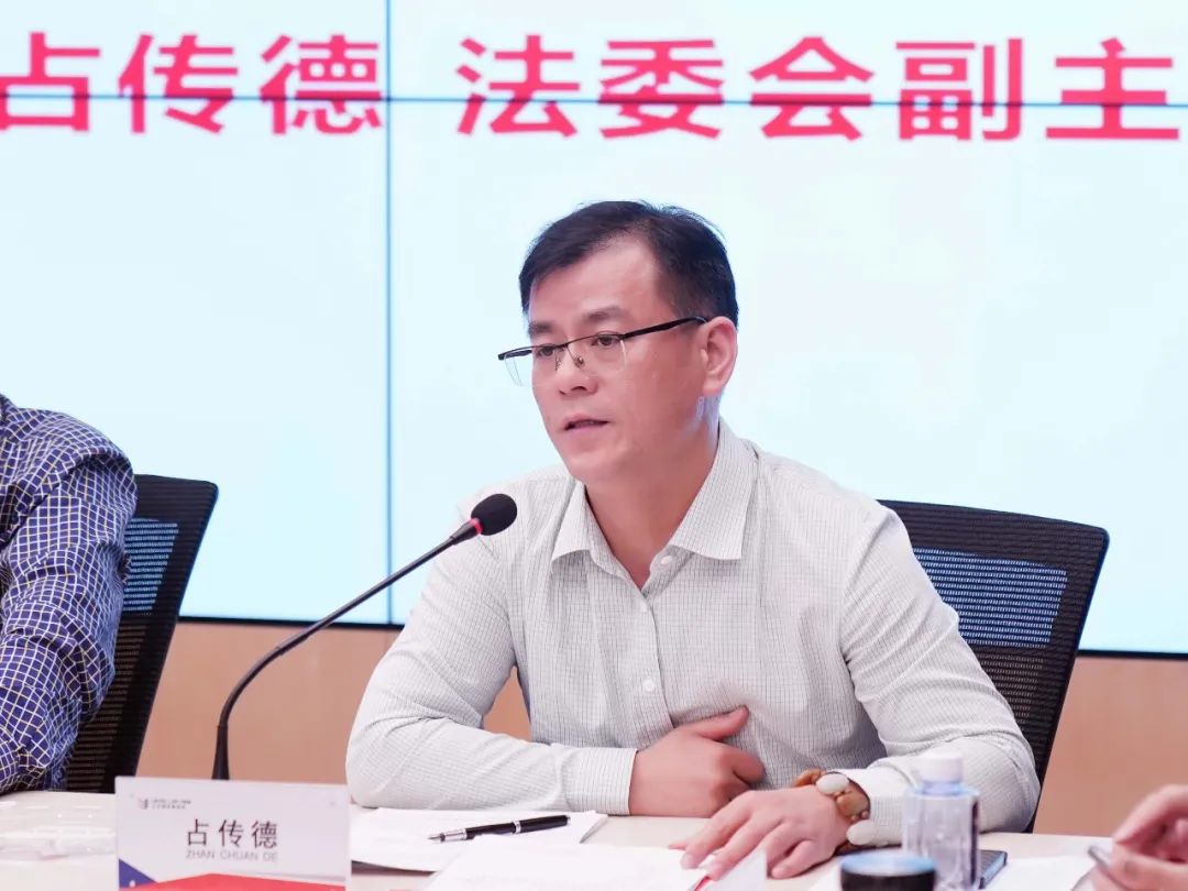 隨后,與會人員在立豐所一號會議廳召開會議。會議由法委會副主任占傳德主持。