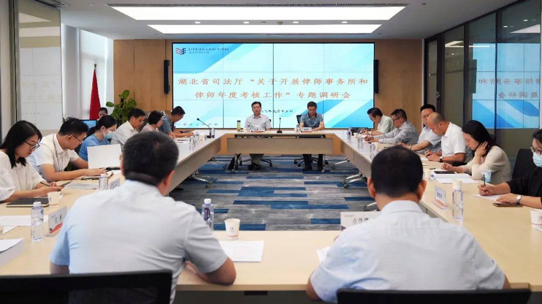 2022年9月15日上午,湖北省司法廳律師工作處處長(zhǎng)李鑫一行蒞臨湖北立豐律師事務(wù)所(以下簡(jiǎn)稱“立豐所”)調(diào)研律師事務(wù)所和律師年度考核工作,開展專題研討會(huì)。武漢市司法局、武漢市律師協(xié)會(huì)、武昌區(qū)司法局、洪山區(qū)司法局、江岸區(qū)司法局、北京德恒(武漢)律師事務(wù)所、湖北立豐律師事務(wù)所相關(guān)負(fù)責(zé)人參加了本次座談?wù){(diào)研。