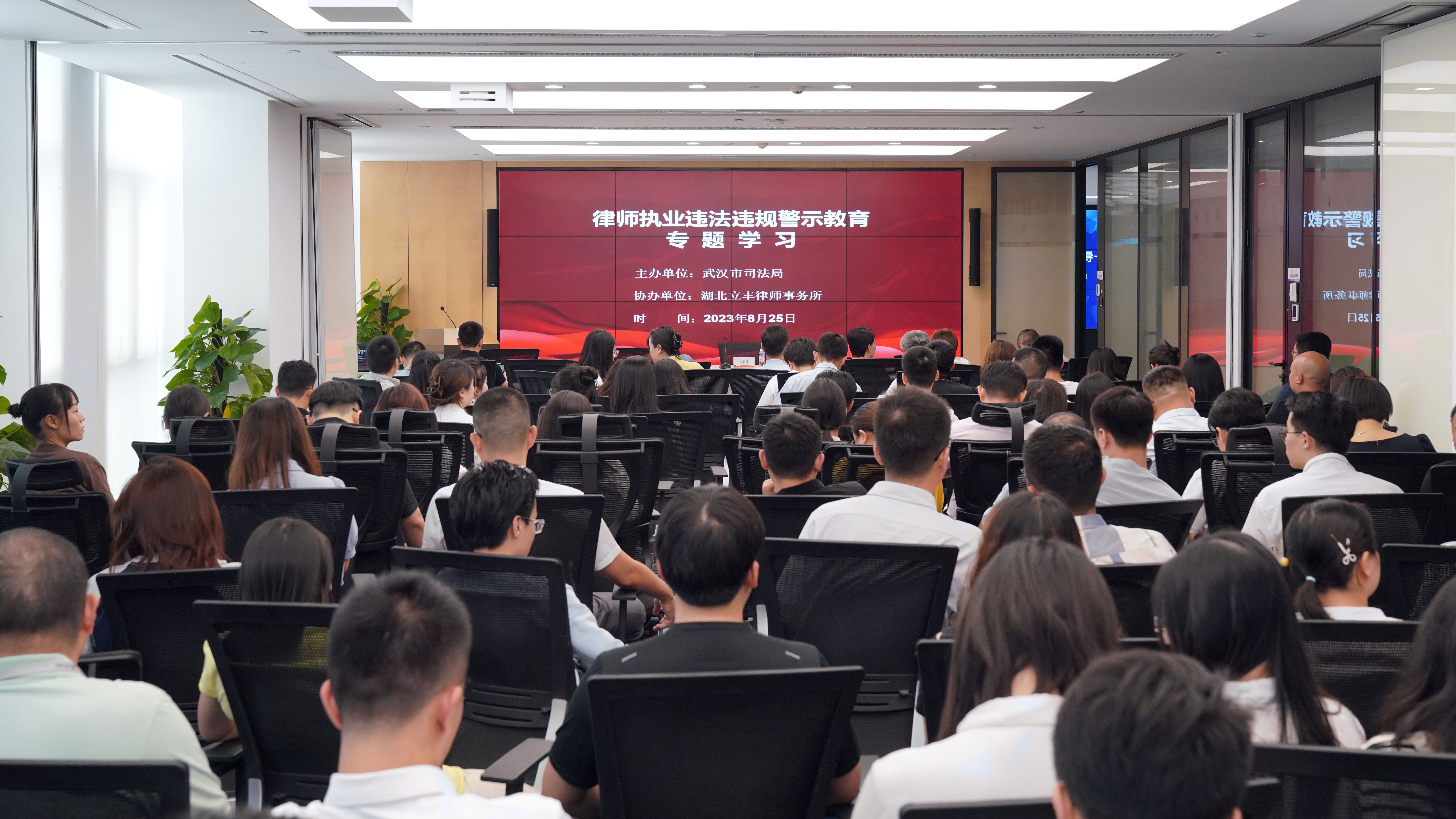為深入學(xué)習(xí)貫徹習(xí)近平總書(shū)記關(guān)于“努力做黨和人民滿(mǎn)意的好律師”重要指示精神,進(jìn)一步規(guī)范律師執(zhí)業(yè),防范執(zhí)業(yè)風(fēng)險(xiǎn),發(fā)揮典型案例的教育、警示和震懾作用,2023年8月25日下午,湖北立豐律師事務(wù)所(以下簡(jiǎn)稱(chēng)“立豐所”)組織召開(kāi)“律師執(zhí)業(yè)違法違規(guī)警示教育”專(zhuān)題學(xué)習(xí)會(huì),特邀武漢市司法局律師工作處副處長(zhǎng)、市律協(xié)副秘書(shū)長(zhǎng)陶長(zhǎng)玲,武漢市司法局“樊靜先鋒隊(duì)”隊(duì)員、律師工作處三級(jí)主任科員唐正旺進(jìn)行專(zhuān)題授課。會(huì)議由立豐所黨委書(shū)記、主任劉勛主持。