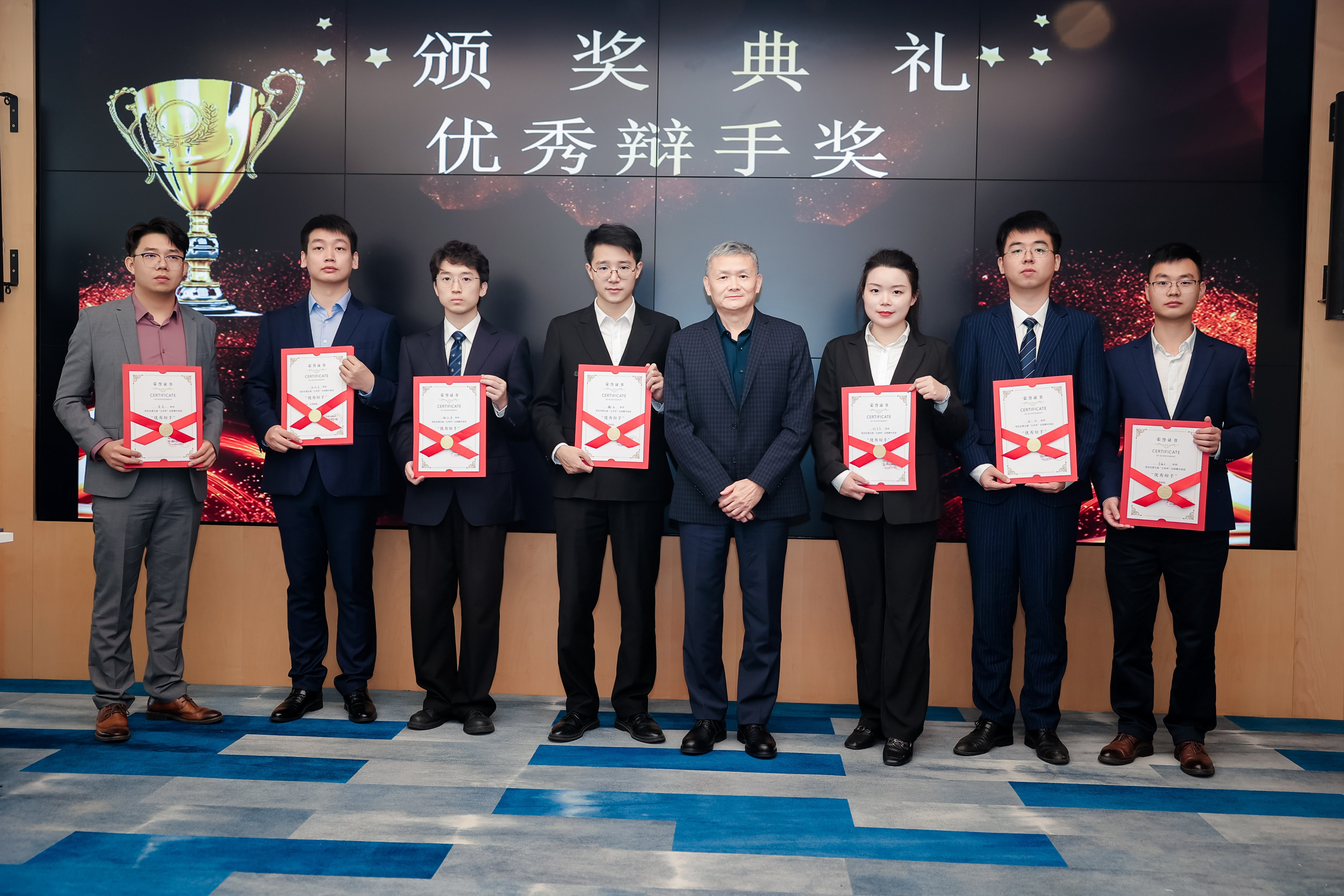 經(jīng)過一上午的兩場精彩的對局,兩組論辯賽的評分工作由三名特邀評委和兩個(gè)律所各派出一名評委完成,五名評委從立論陳詞、攻辯盤問、自由辯論、總結(jié)陳詞、團(tuán)隊(duì)配合五個(gè)方面對選手和論辯團(tuán)隊(duì)進(jìn)行全方位的評比打分。本著“公平、公正、公開”的原則,以去掉一個(gè)最高分和最低分后取其平均分,核算出各選手和團(tuán)隊(duì)的最終分?jǐn)?shù)及排名。最終,民事組論辯法輝代表隊(duì)獲得優(yōu)秀團(tuán)隊(duì)獎(jiǎng)、法輝代表隊(duì)辯手謝娟獲得最佳辯手,鐘青青、魏弘博等辯手獲優(yōu)秀辯手。刑事組論辯立豐代表隊(duì)獲得優(yōu)秀團(tuán)隊(duì)獎(jiǎng)、立豐代表隊(duì)辯手林晨陽獲最佳辯手,譚晰雅、王雨嬋等人獲優(yōu)秀辯手。特邀評委分別為最佳辯手和優(yōu)秀團(tuán)隊(duì)頒獎(jiǎng)。