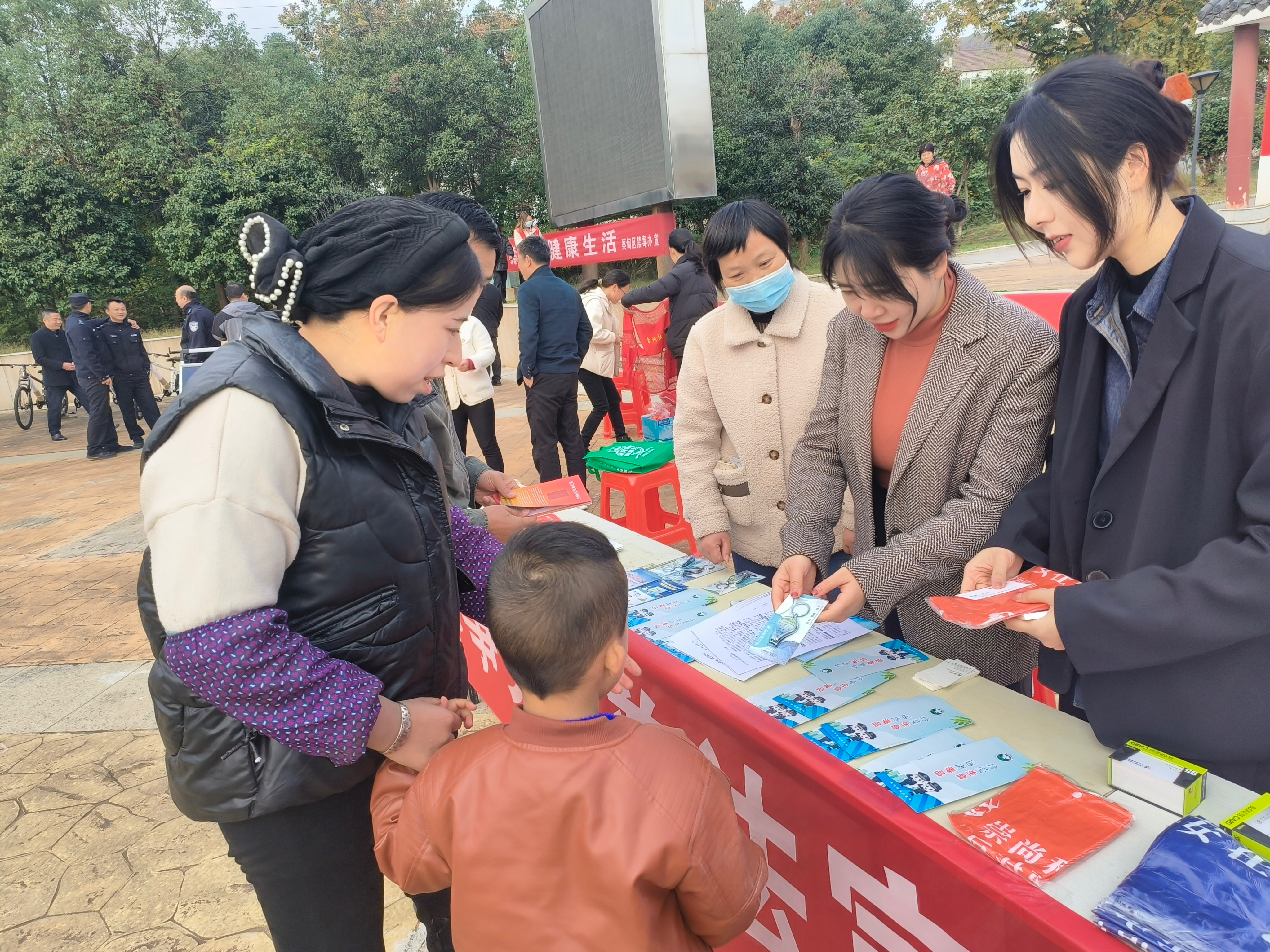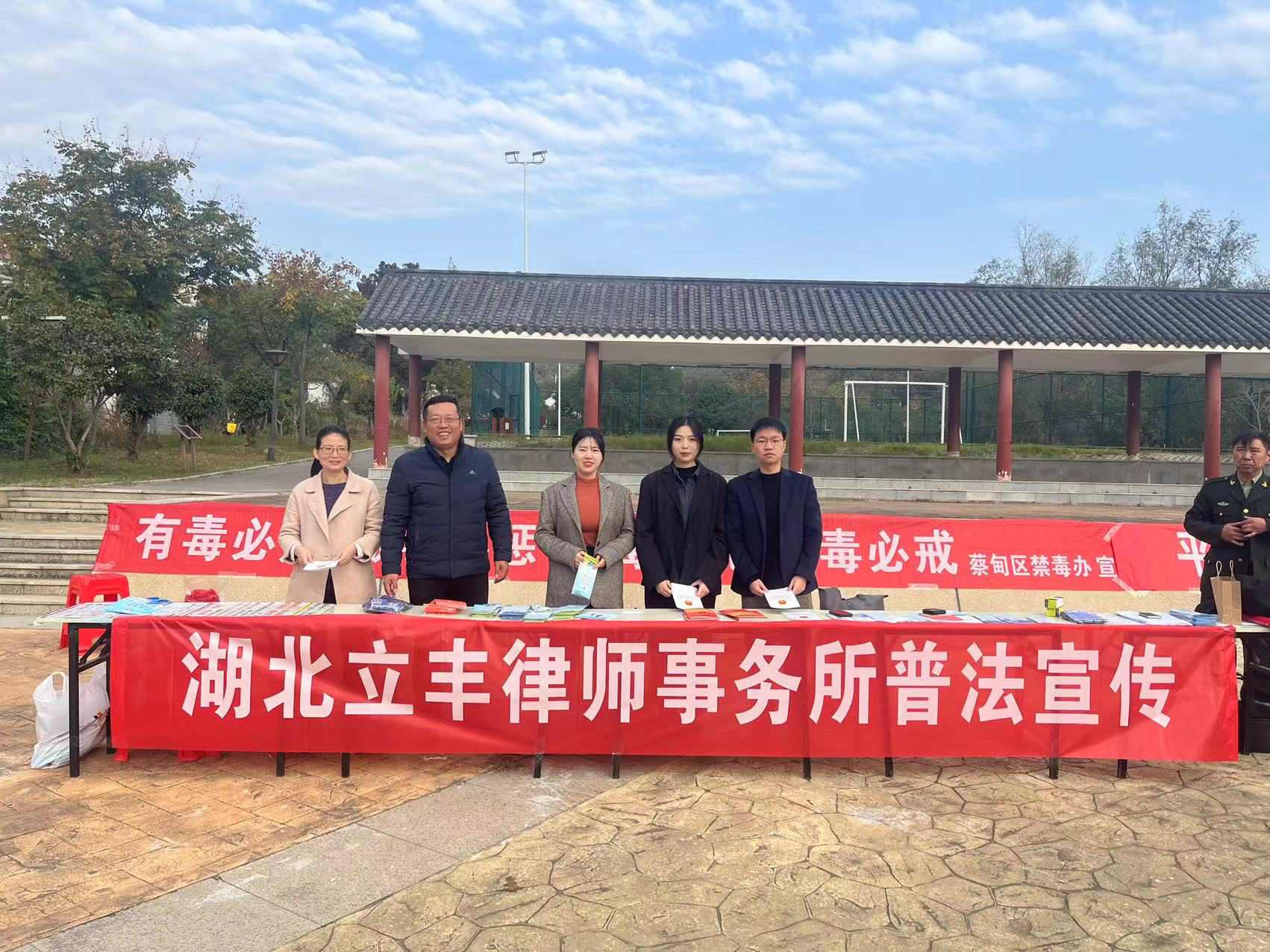 為貫徹落實習(xí)近平總書記關(guān)于加強法治宣傳工作、嚴(yán)肅禁毒及反邪教方面的重要講話精神。2023年11月24日,湖北立豐律師事務(wù)所(以下簡稱“立豐所”)聯(lián)合蔡甸區(qū)索河街道平安辦公室、蔡甸區(qū)索河街道司法所、蔡甸區(qū)索河街派出所、蔡甸區(qū)索河街道索河社區(qū)在蔡甸區(qū)索河街道文化廣場開展“普法下鄉(xiāng)、禁毒反邪教”主題普法宣傳活動,助力鄉(xiāng)村振興。