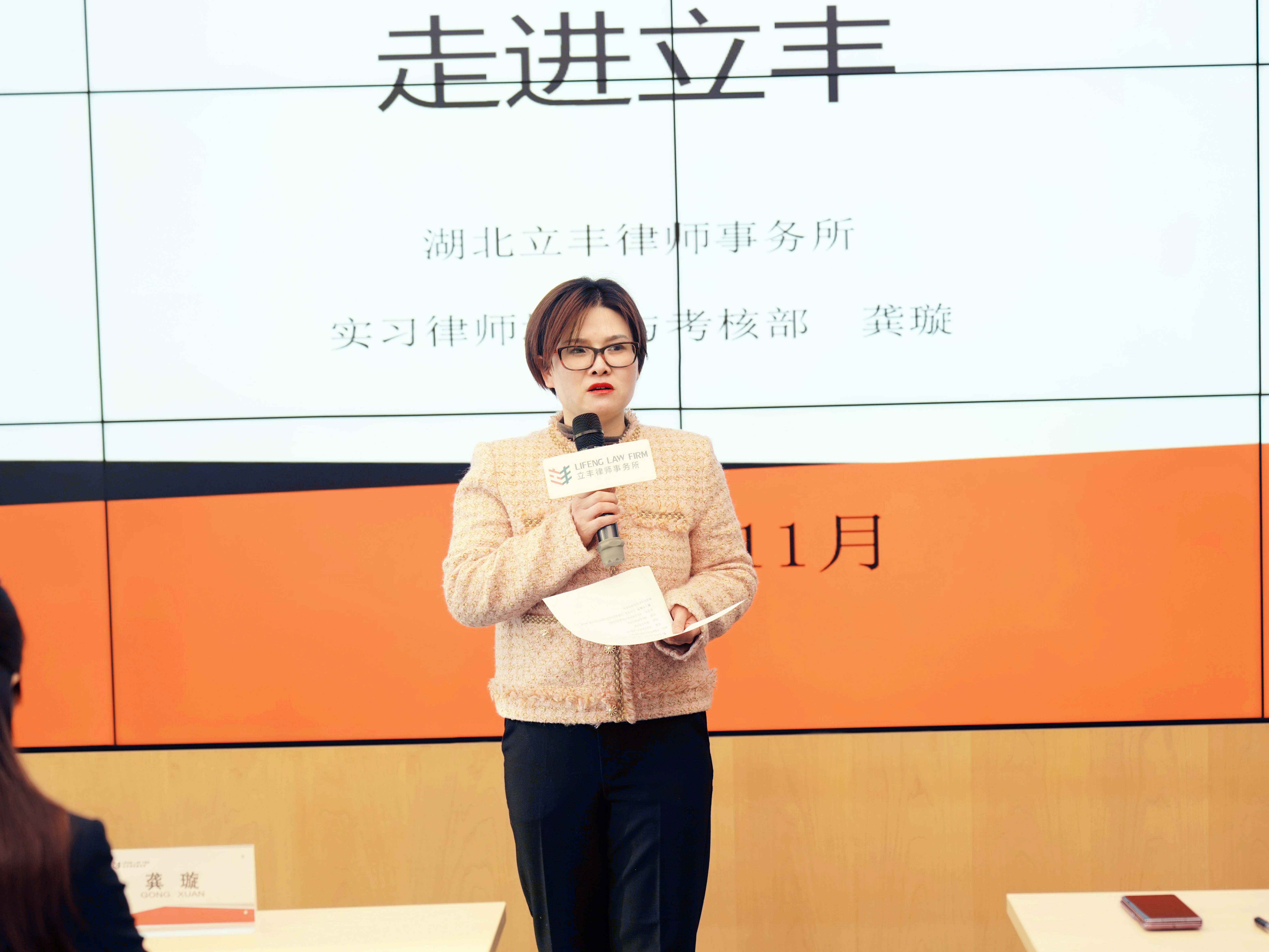 培訓(xùn)環(huán)節(jié)依次由實習(xí)律師培訓(xùn)與考評部副部長龔璇、劉麗、部長夏愛華做《企業(yè)文化培訓(xùn)之“走進立豐”》、《律師執(zhí)業(yè)紀律培訓(xùn)》、《實習(xí)律師如何快速適應(yīng)職場》的培訓(xùn)。