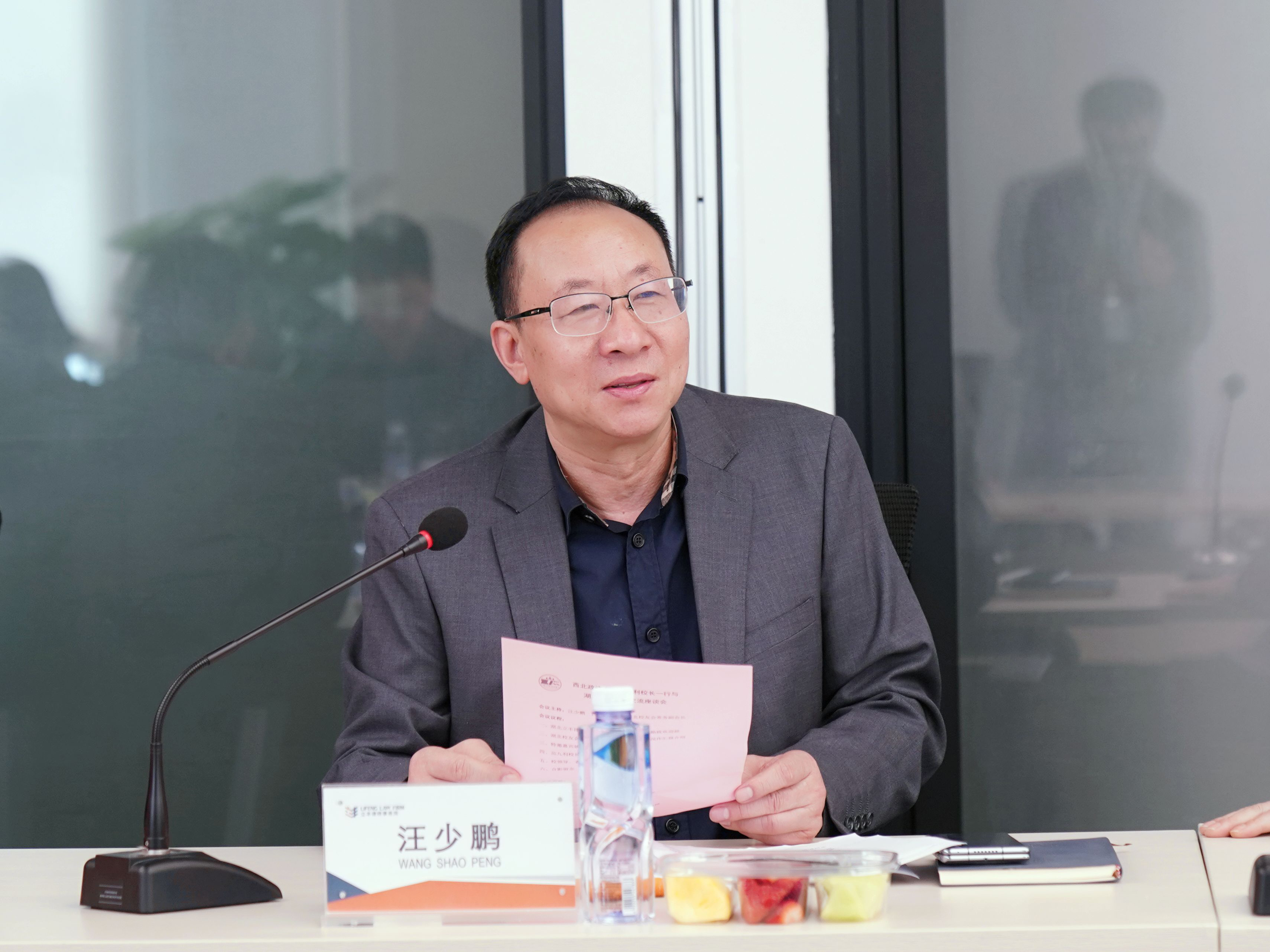 湖北立豐律師事務(wù)所黨委書記、主任劉勛向在座嘉賓致歡迎辭。他首先代表立豐所全體人員,對蒞臨座談會的領(lǐng)導(dǎo)、嘉賓表示熱烈的歡迎,對長期以來關(guān)心、支持立豐所建設(shè)與發(fā)展的各位領(lǐng)導(dǎo)、同仁表示衷心的感謝。他介紹了立豐所創(chuàng)所29年以來的建設(shè)與發(fā)展歷程、分所開設(shè)情況、業(yè)務(wù)領(lǐng)域、專業(yè)優(yōu)勢及所獲榮譽,并表示立豐所有今天的發(fā)展與實力,離不開西北政法大學(xué)、中南財經(jīng)政法大學(xué)等國內(nèi)知名法學(xué)院校及各位校友的鼎力支持,并再次感謝范校長、姚教授一行的蒞臨。