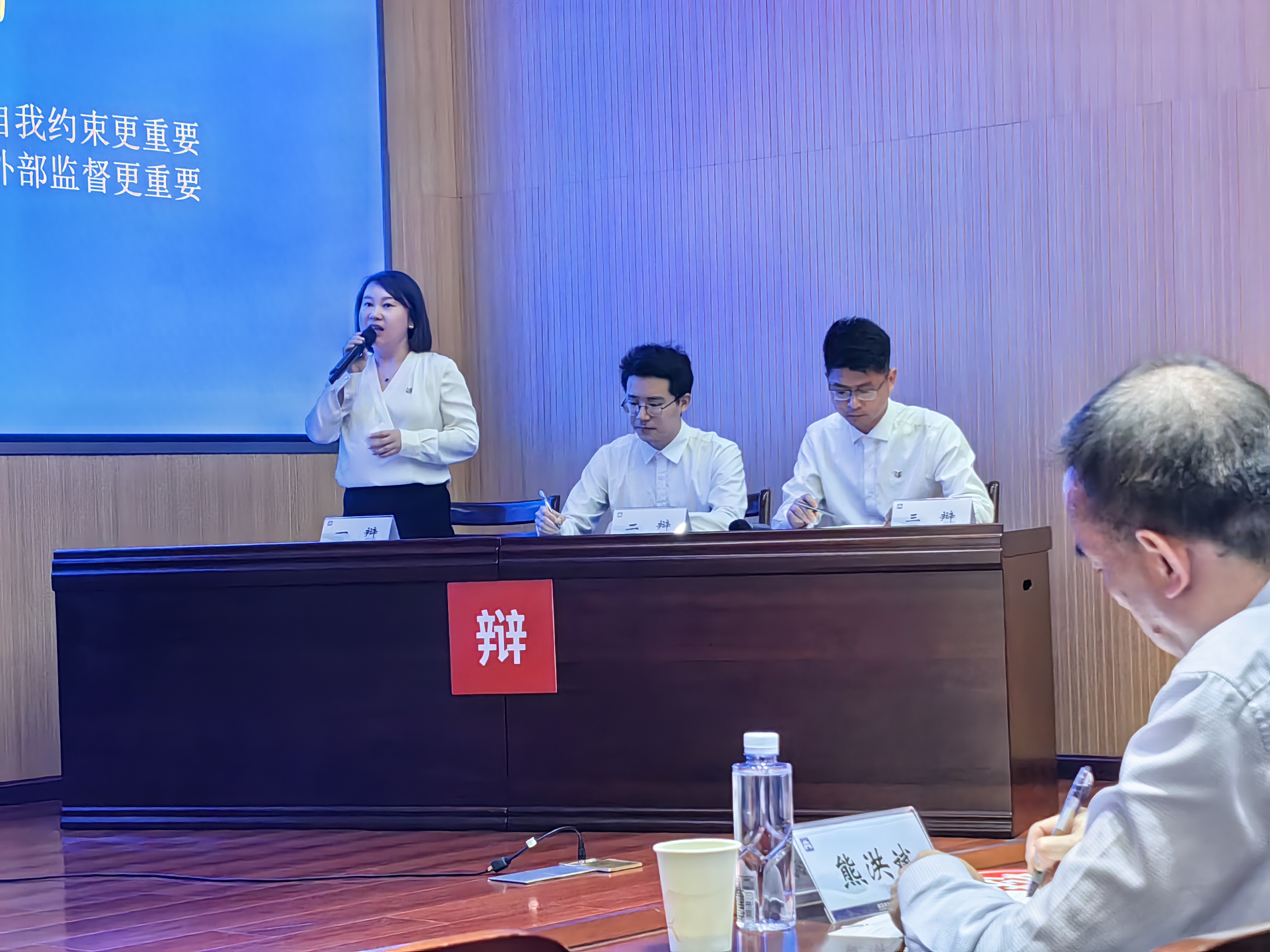 立豐所合伙人鄒藝、李九一,青年律師夏亮組建的辯方隊(duì)參加了“三對(duì)三”辯論環(huán)節(jié),與漢陽(yáng)區(qū)檢察院游燁林、何悅、張凱越三位組建的檢察官隊(duì)伍進(jìn)行“青年人的廉潔教育自我約束VS外部監(jiān)督”的辯論。雙方分別從以下三個(gè)論辯觀點(diǎn)展開(kāi):