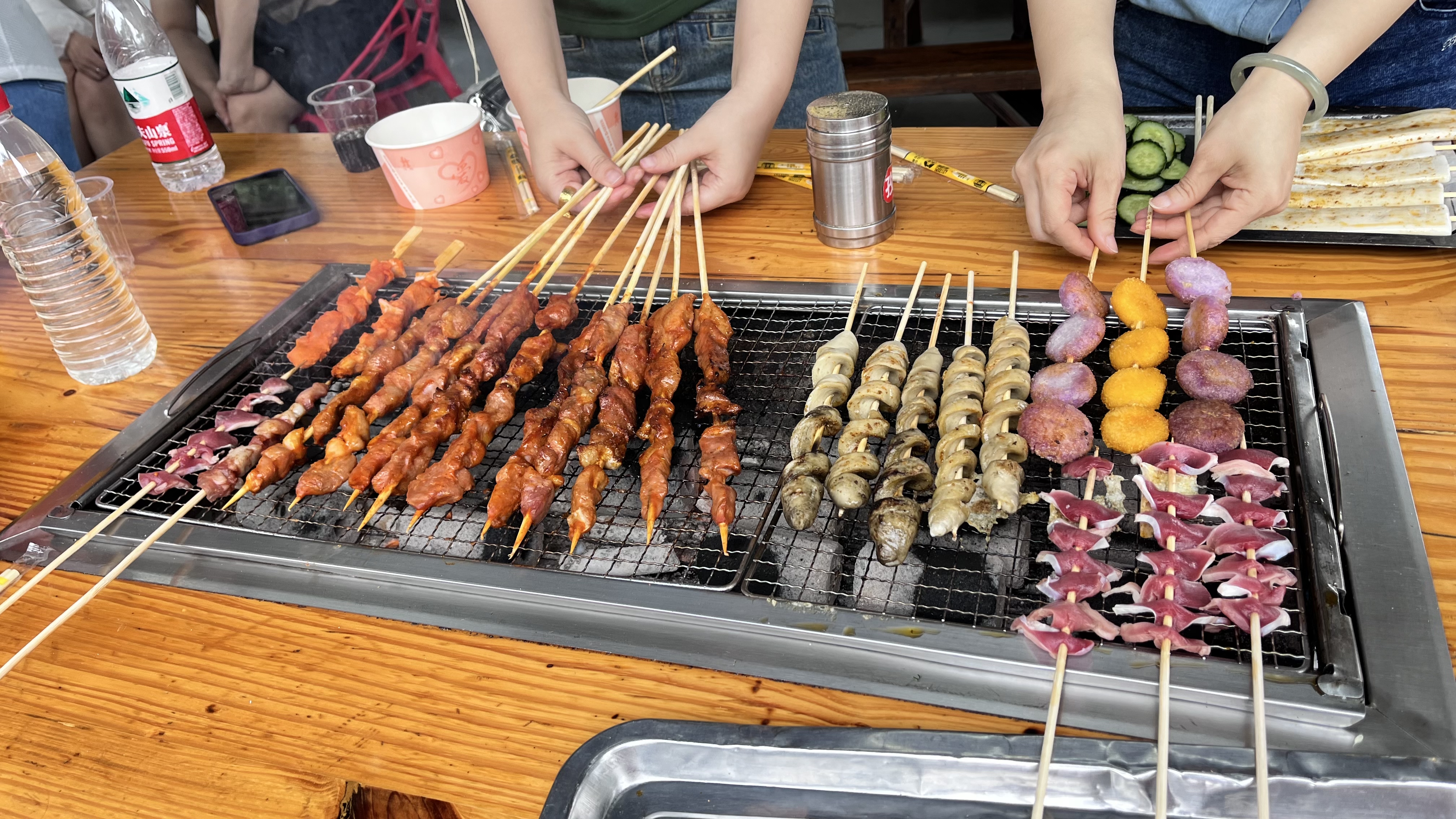 徒步結(jié)束后,開啟了美食與唱歌的聯(lián)歡。室外,大雨磅礴;室內(nèi),青春飛揚(yáng)。心有猛虎,細(xì)嗅薔薇。雨聲,歡笑聲,歌聲,現(xiàn)場是快樂的海洋。