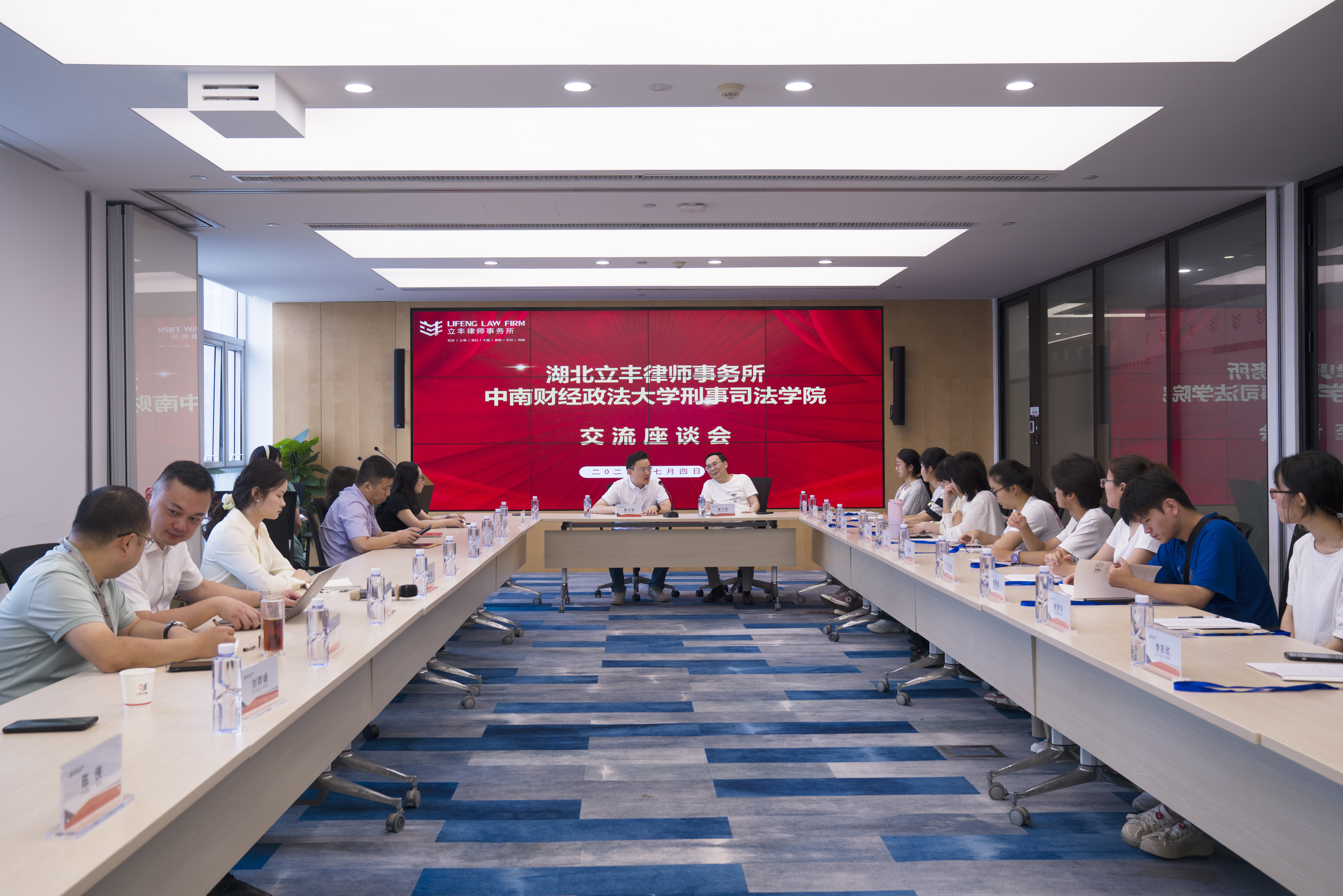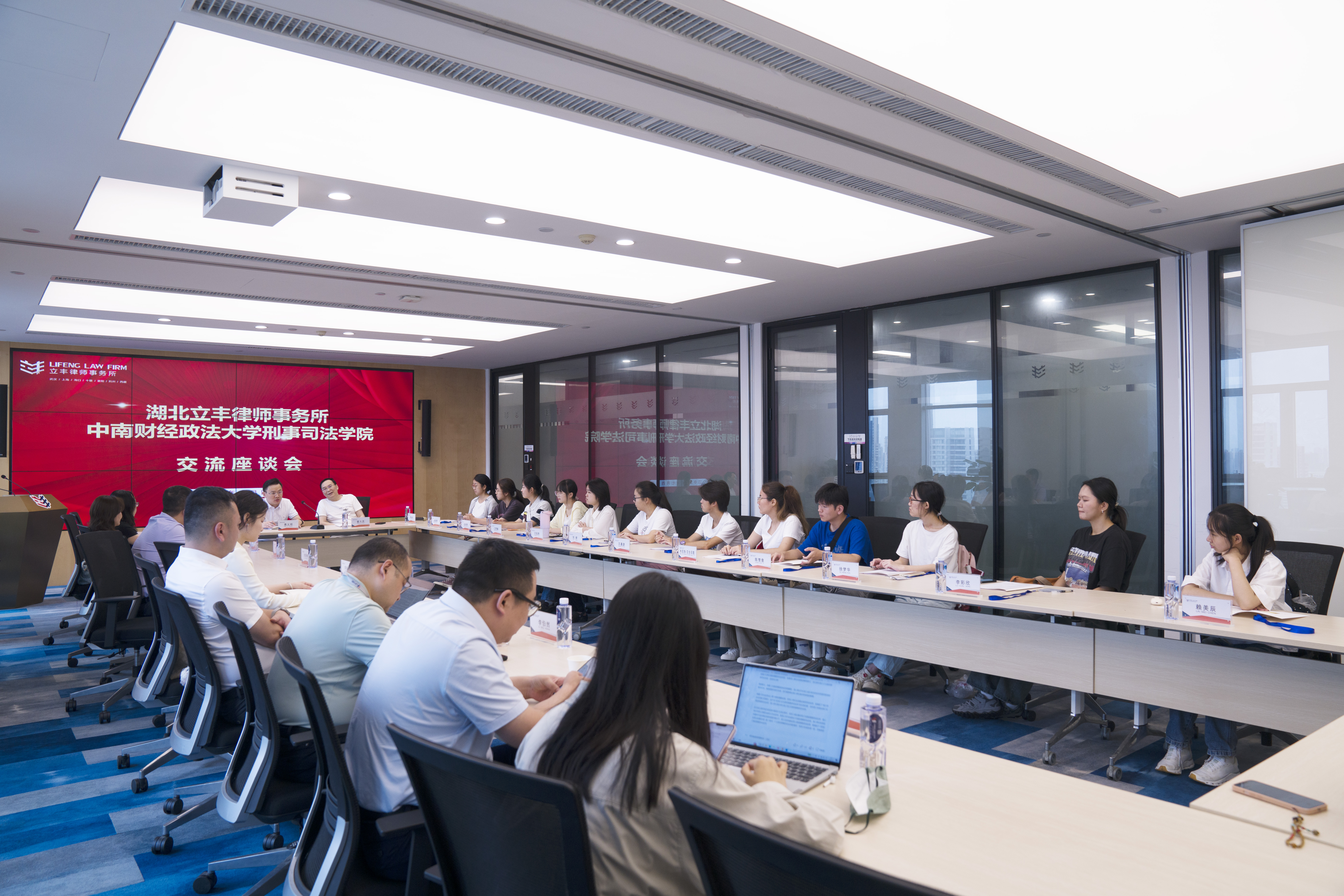 2024年7月3日上午,湖北立豐律師事務所(以下簡稱“立豐所”)召開中南財經政法大學刑事司法學院(以下簡稱“刑事司法學院”)暑期見習生見面會。由刑事司法學院培訓中心主任、刑法學系副主任、副教授曾大慶所帶領的司法專業(yè)的12位本科生和1位研究生共13位同學,以及立豐所10位律師代表共同參加了見面座談會。