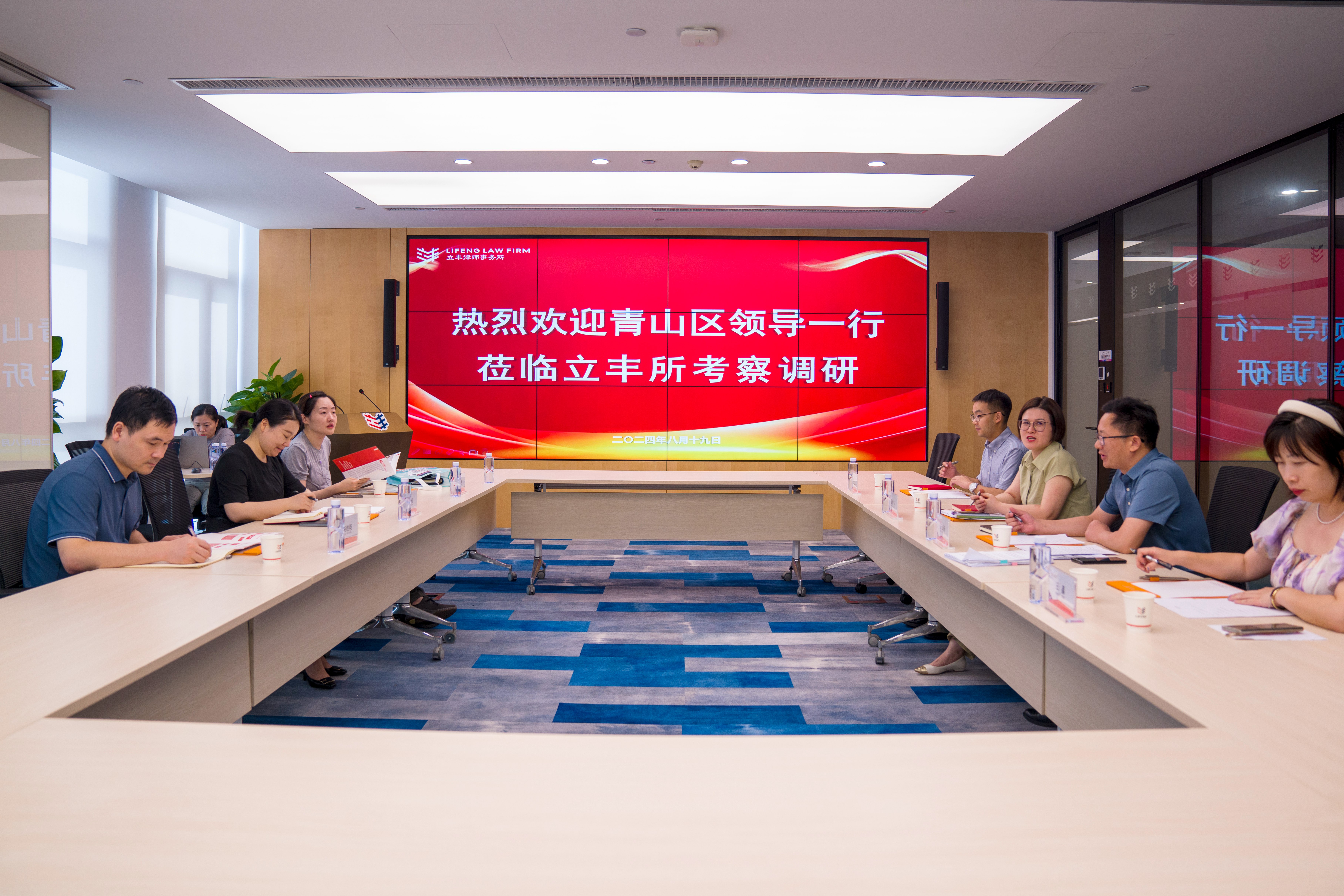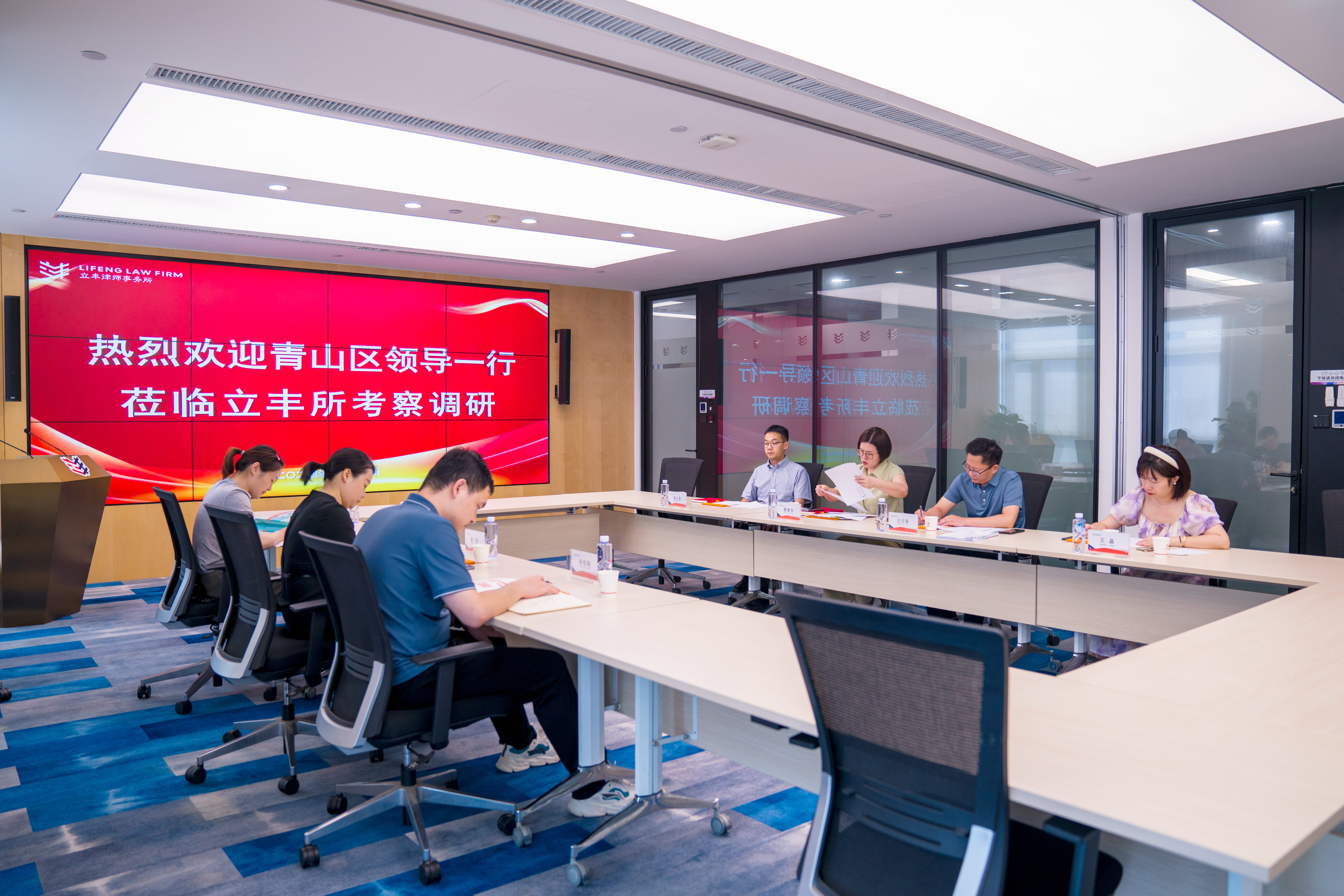 2024年8月19日下午,青山區(qū)商務(wù)局副局長謝倩,青山區(qū)司法局律管科負(fù)責(zé)人吳迪,青山區(qū)商務(wù)局科長楊銳翔一行蒞臨湖北立豐律師事務(wù)所(以下簡稱“立豐所”)考察調(diào)研。立豐所執(zhí)行主任汪后新,管委會副主任夏愛華,擬任立豐青山分所主任張小吉,行政部部長王晶參加了調(diào)研座談。