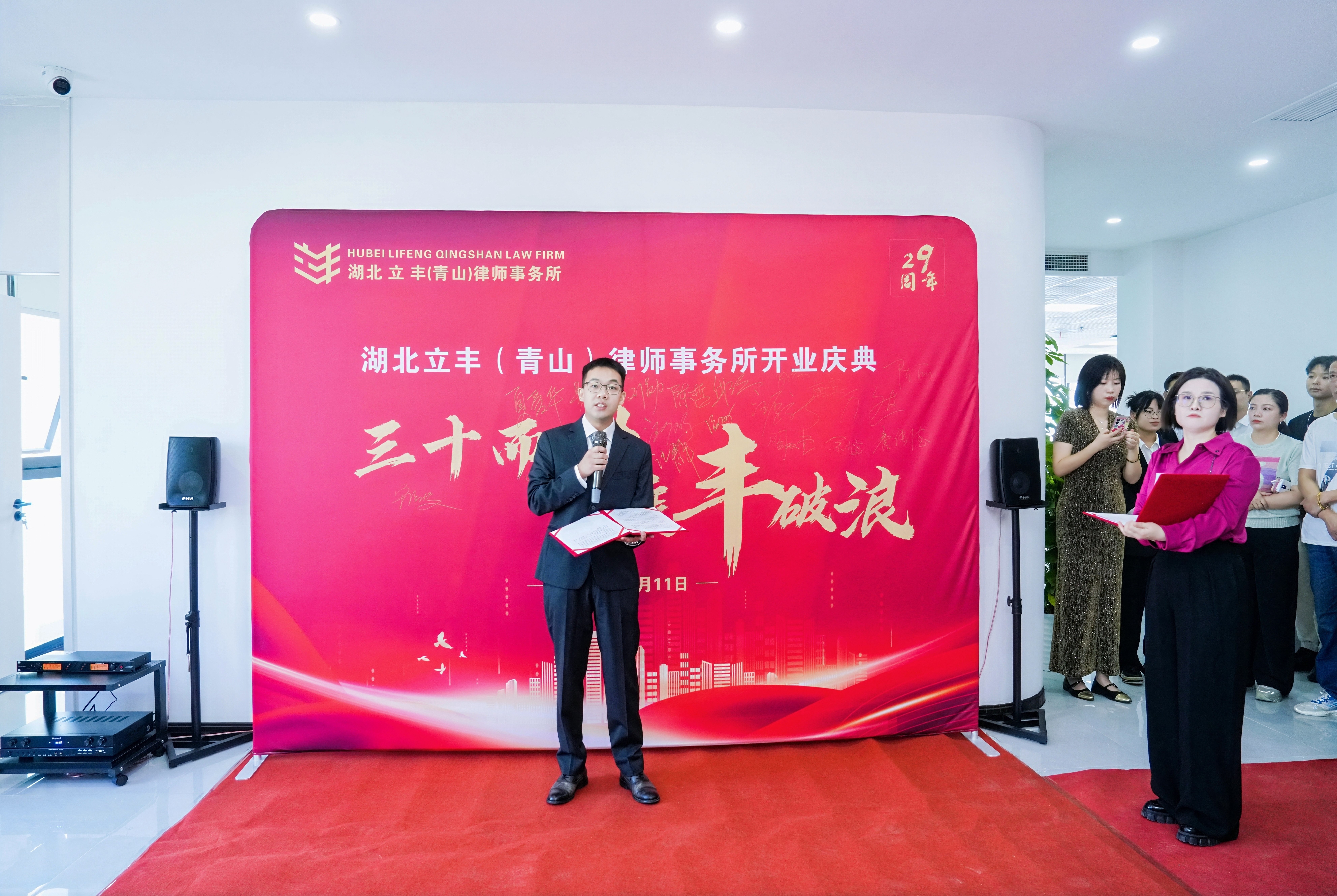 2024年10月11日上午,湖北立豐(青山)律師事務(wù)所(以下簡(jiǎn)稱“立豐青山分所”)在武漢市青山區(qū)寶業(yè)中心A棟17樓舉行了隆重的開(kāi)業(yè)慶典,慶典分為領(lǐng)導(dǎo)、嘉賓致辭,揭牌、剪彩儀式,參會(huì)嘉賓座談交流等環(huán)節(jié)。
