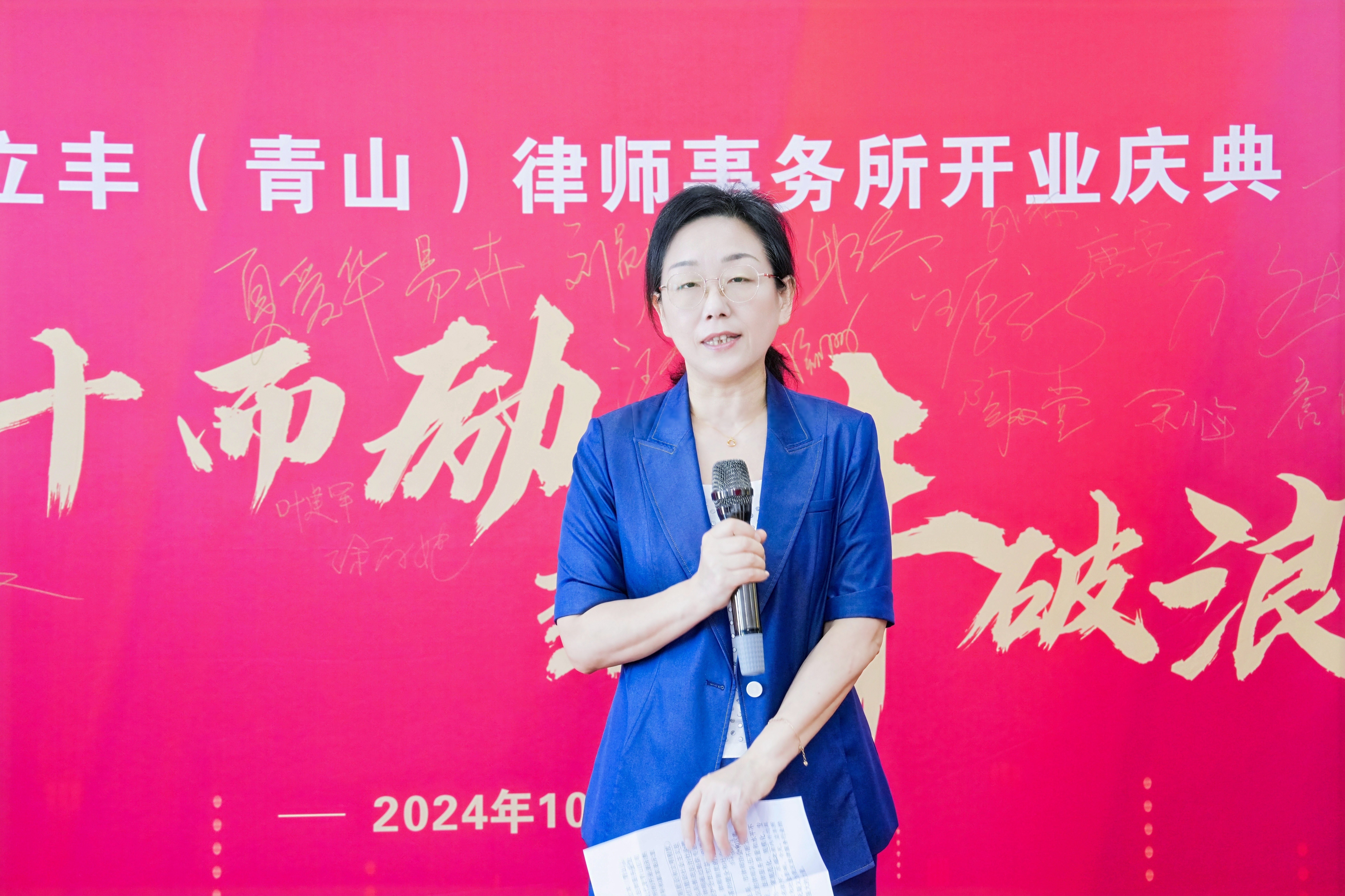 立豐青山分所主任張小吉向在分所籌備過(guò)程中給予支持和幫助的立豐所各位領(lǐng)導(dǎo)和全體高級(jí)合伙人、青山區(qū)各級(jí)領(lǐng)導(dǎo)及青山分所的同事們表達(dá)了誠(chéng)摯的感謝。他表示對(duì)青山分所的未來(lái)充滿期待與信心,一方面,在立豐所的各項(xiàng)支持下,立豐青山分所能迅速地在青山區(qū)扎根,深挖法律服務(wù)市場(chǎng),不斷吸收優(yōu)秀法律人才,打造一支專業(yè)過(guò)硬、富有創(chuàng)新精神的律師隊(duì)伍,為青山區(qū)的法治建設(shè)貢獻(xiàn)一份力量;另一方面,立豐青山分所將與立豐其他城市、地區(qū)的分所保持密切的合作與交流,資源共享、優(yōu)勢(shì)互補(bǔ),秉承立豐“厚德明法、博學(xué)篤行”之信條,共同推動(dòng)立豐共同體的持續(xù)蓬勃發(fā)展。