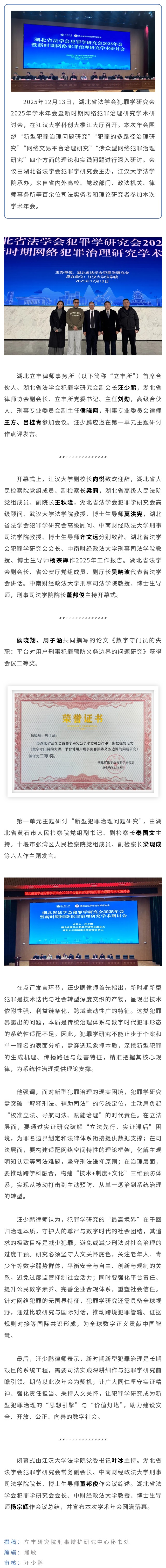 汪少鵬等立豐律師應邀參加湖北省法學會犯罪學研究會2025年年會
