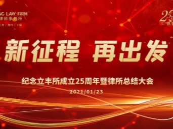 新征程 • 再出發(fā) 2021年1月23日下午,湖北立豐律師事務所(以下簡稱“立豐所”)“紀念立豐所成立25周年暨2020年度總結會”在律所18樓1號會議廳...